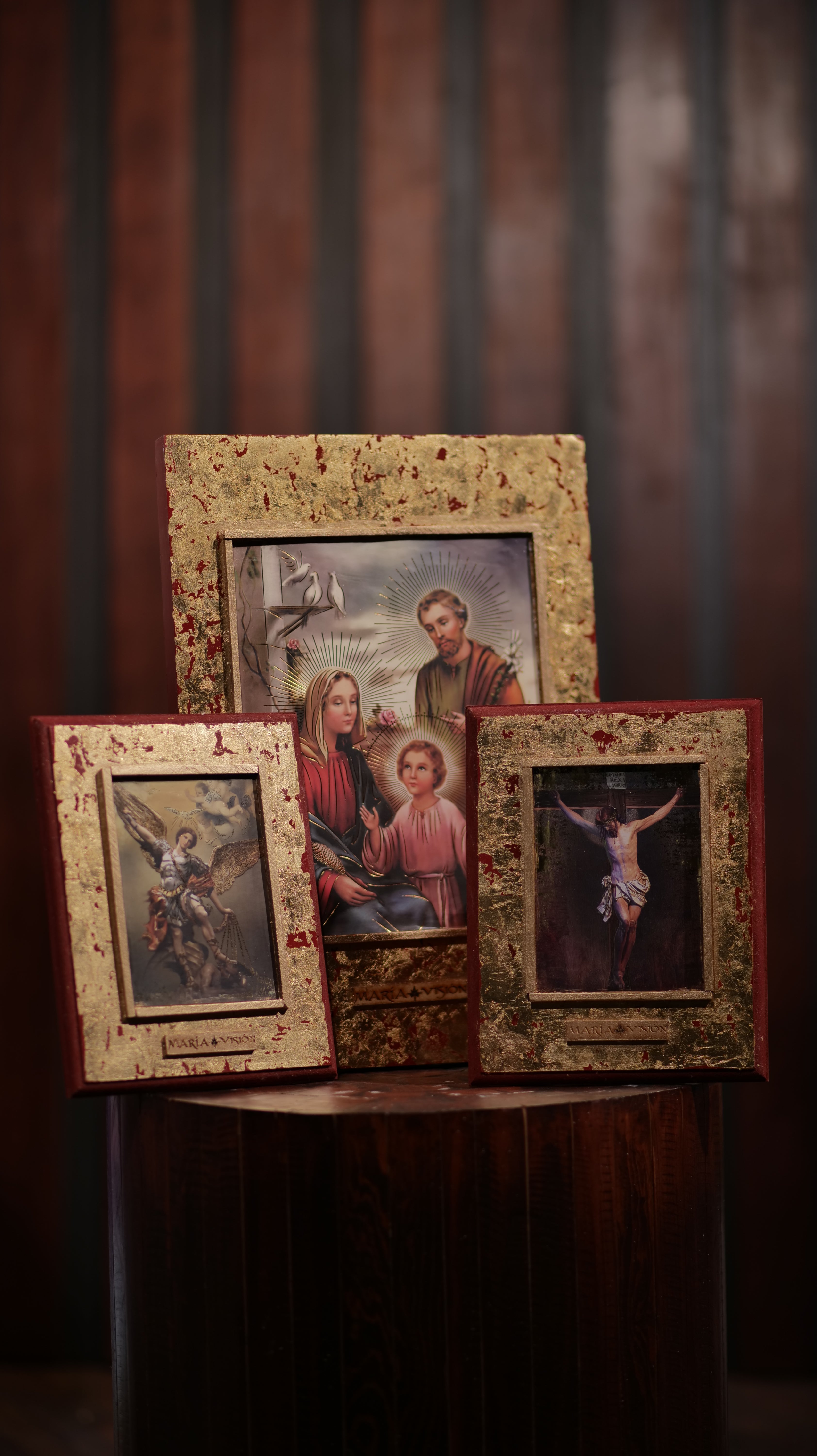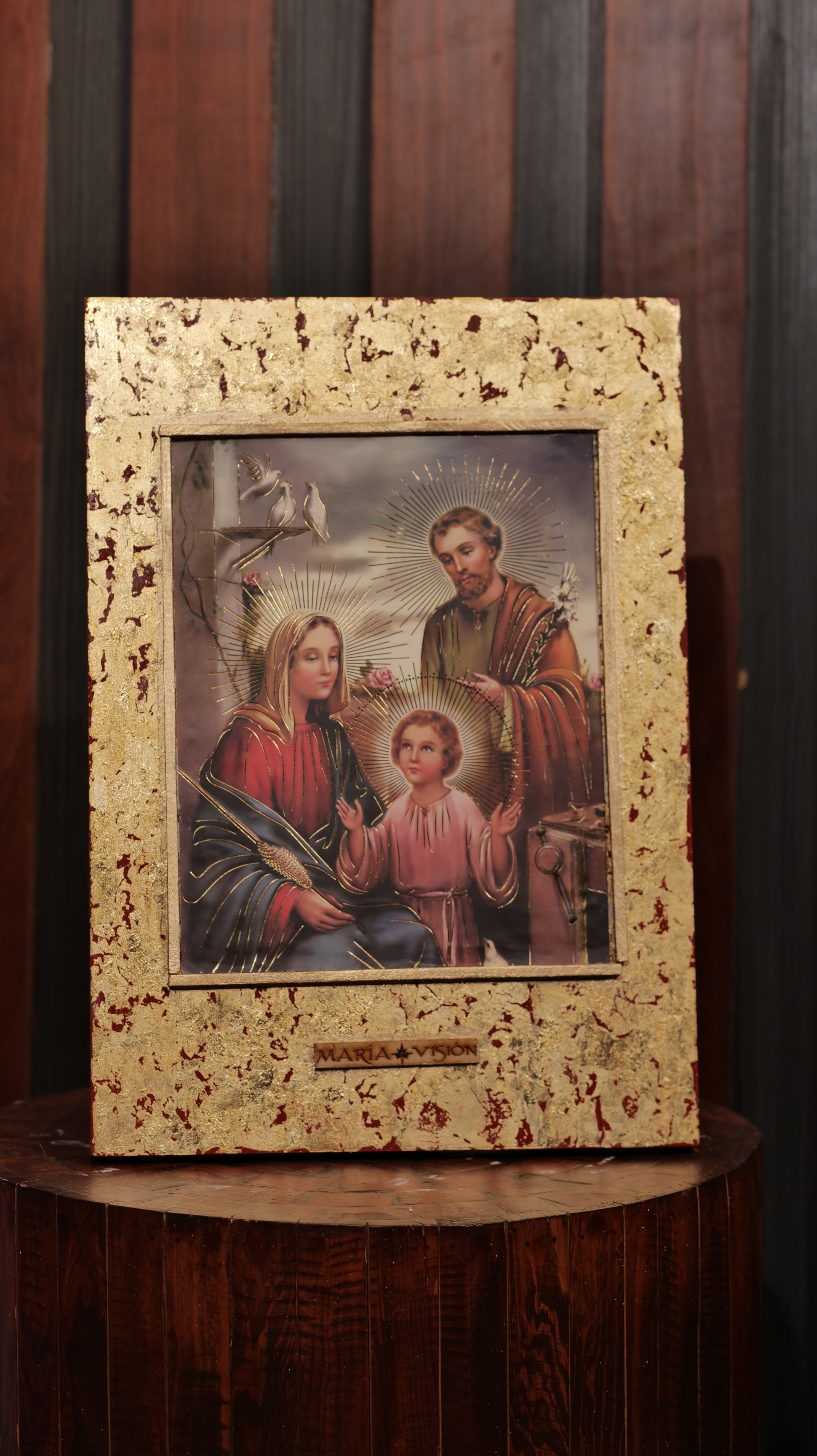 Cuadro decorado con hoja de oro imitativa, con un original terminado craquelado.