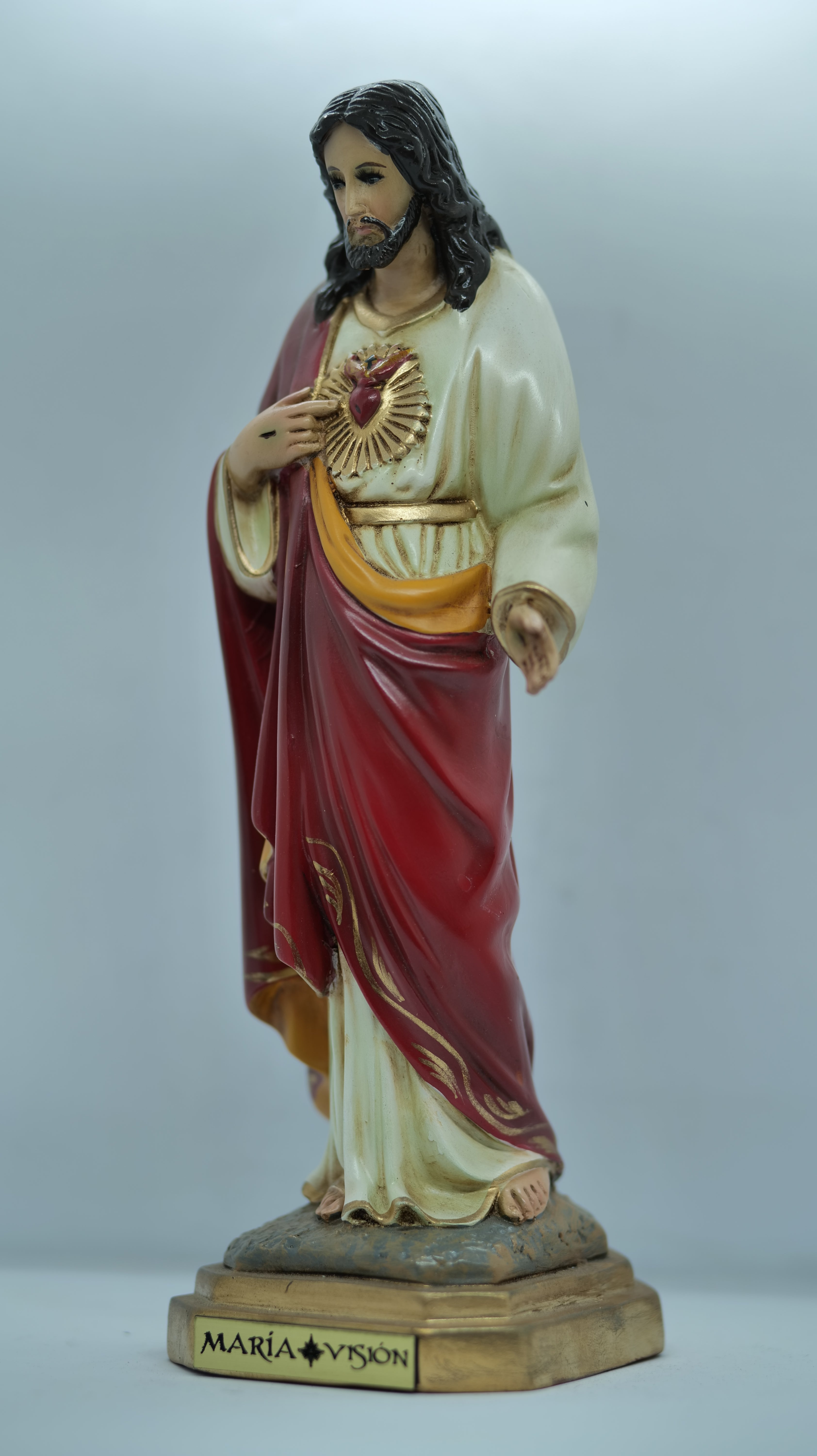 Articulo Religioso: Escultura en resina ,policromado  en técnica mixta con óleo, acrílico y polvo de oro .Terminado antiguo elaborado con pátina al óleo. Tiene ojos de vidrio y pestañas.