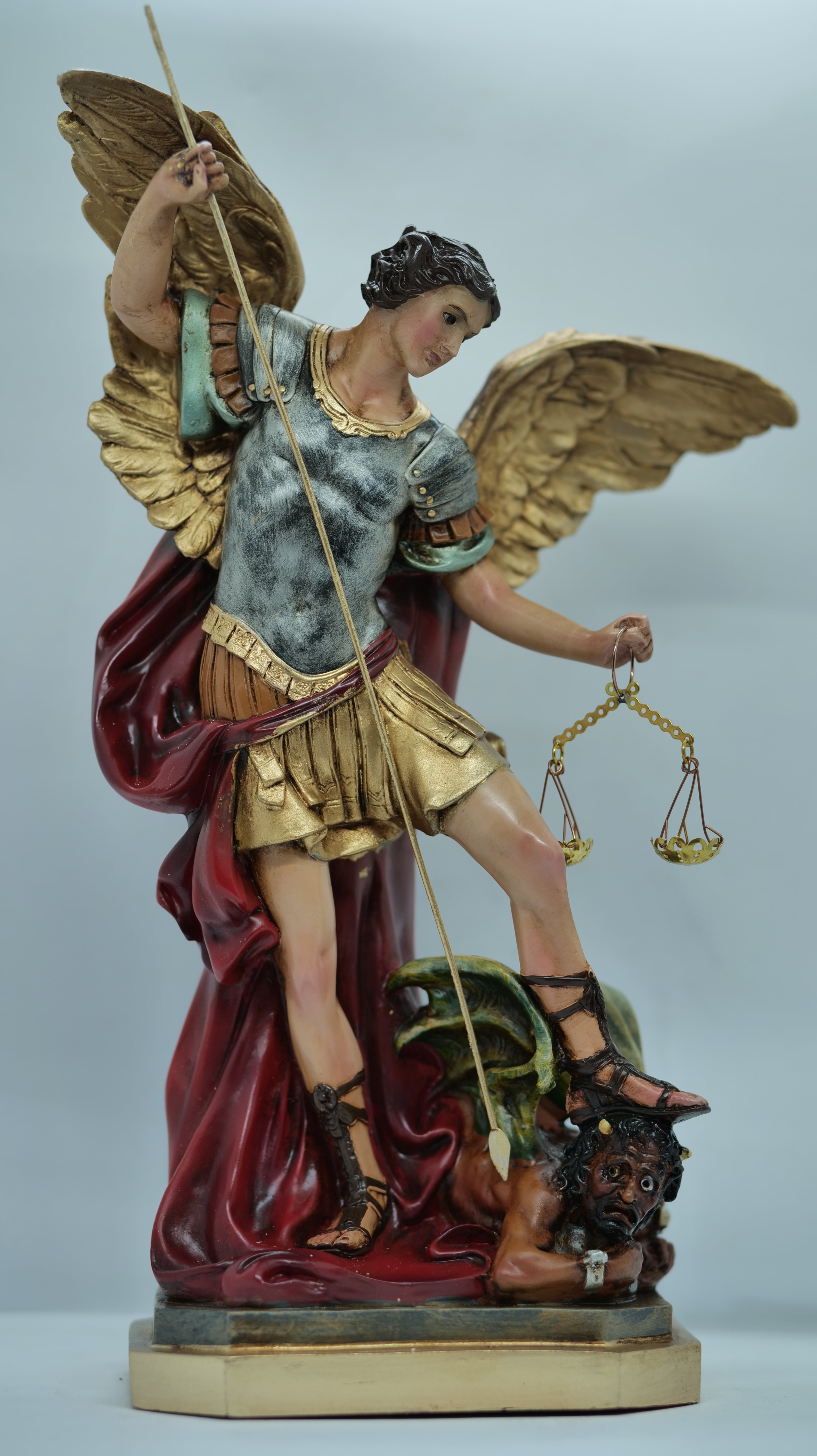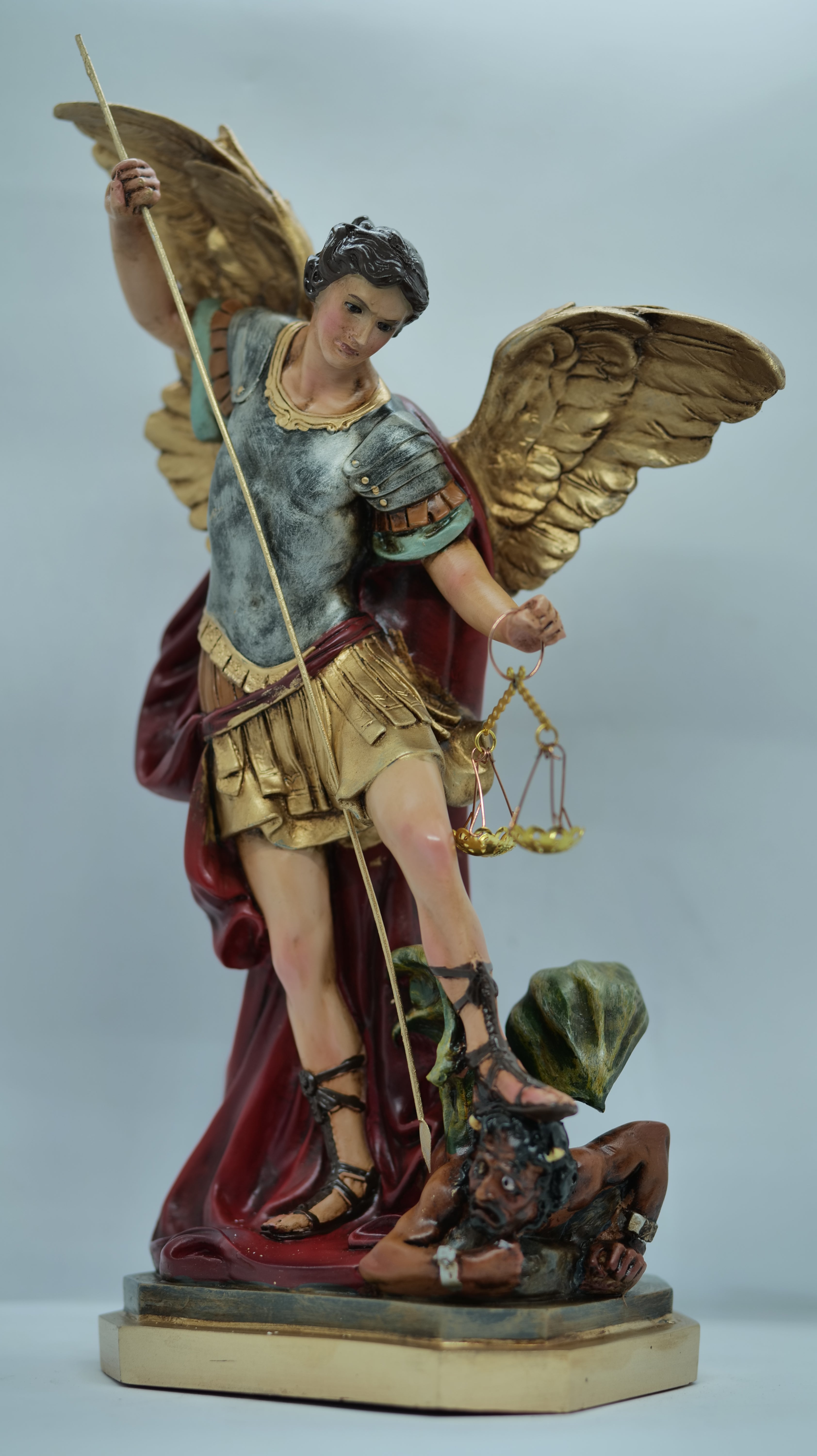 San Miguel es uno de los siete arcángeles y está entre los tres cuyos nombres aparecen en la Biblia: Miguel, Gabriel y Rafael. La Santa Iglesia da a San Miguel el más alto lugar entre los arcángeles y le llama “Príncipe de los espíritus celestiales”, “jefe o cabeza de la milicia celestial”. En el Antiguo Testamento aparece como el gran defensor del pueblo de Israel contra el demonio, y su poderosa defensa continúa en el Nuevo Testamento (Apocalipsis 12,7-9):” Entonces se entabló una batalla en el cielo: Miguel y sus Ángeles combatieron con el Dragón. También el dragón y sus ángeles combatieron, pero no prevalecieron y no hubo ya en cielo lugar para ellos. Y fue arrojado el gran Dragón, la serpiente antigua, el llamado Diablo y Satanás, el seductor del mundo entero”.